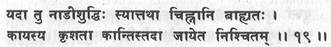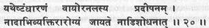(20) Когда практикующий способен удерживать вайю по своему желанию, пищеварительные способности возрастают. Когда нади прочищены, пробуждается внутренний звук, или нада, и человек свободен от болезней.