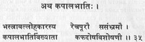 Последней из шести шаткарм является капалабхати. В трактате «Гхеранд Самхита» она известна как бхалабхати. Бхала и капал означают «череп» или «лоб». Слово «бхати» означает «свет» или «блеск, великолепие», а также «восприятие и знание». Капалабхати представляет собой технику пранаямы, которая придает силы всему мозгу и пробуждает дремлющие центры, ответственные за тонкое восприятие. В английском языке она называется техникой «очищения передней части мозга». Она аналогична практике бхастрика пранаямы, за исключением того, что выдох является более выраженным, а вдох является результатом давления воздуха снаружи. В обычном дыхании вдох является активным, а выдох — пассивным. В этой практике все делается наоборот: выдох становится активным, а вдох — пассивным.