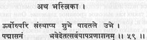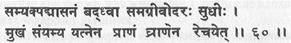 (60) Сидя правильно в падмасане и удерживая шею и живот на одной линии, выдыхай прану через нос.