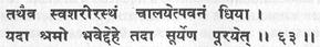 (63) Таким образом дыхание осуществляется с полным осознаванием и со стабильностью тела. Когда тело устанет, вдыхай через правую ноздрю.