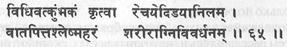 (65) Систематически выполняя (пранаяму и) задержку, выдыхай через левую ноздрю. Таким образом уничтожается дисбаланс ветра, слизи и желчи и увеличивается пищеварительный огонь.