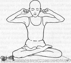 Практикуйте технику 1 с йони мудрой. Это означает, что после вдоха следует выполнить кумбхаку и закрыть уши большими пальцами, глаза — указательными пальцами, ноздри — средними пальцами и рот — безымянными пальцами и мизинцами.