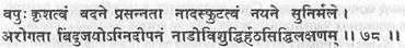 Совершенство хатха йога достигается тогда, когда имеются худощавость тела, спокойствие, проявление внутреннего звука, ясные глаза, отсутствие болезней, контроль над бинду (сперма/яйцеклетка), активный пищеварительный огонь и очищение нади.