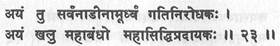 (23) Это прекращает движение энергии вверх в нади. Воистину, эта маха бандха дарует великие сиддхи.