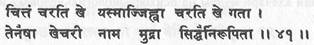 (41) Ум движется в Брахмана (кхе), потому что язык движется в пространство (кхе). Поэтому совершенные называют эту мудру кхечари — движущийся в пространство или в Брахмана.