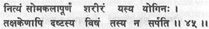(45) Тело йога навсегда заполнено нектаром луны. Даже если он будет укушен королем змей (Такшакой), он не будет отравлен.