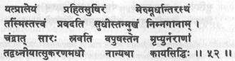 Нектар выделяется из вершины Меру (сушумны), из фонтанирующего верхнего конца нади. Тот, кто имеет чистый ум, может познать Истину внутри себя. Нектар, который является сутью тела, вытекает из луны, и отсюда смерть. Поэтому следует практиковать кхечари мудру, в противном случае совершенство тела не может быть достигнуто.