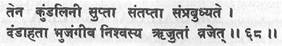 (68) Тогда кундалини, почувствовав жар, пробуждается ото сна, подобно змее, ударенной палкой, шипя и выпрямляясь.