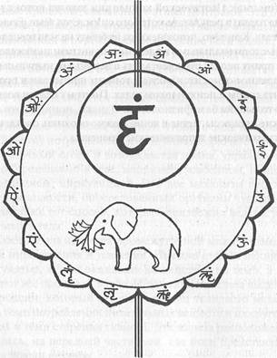 В этой шлоке вишуддхи называется средней чакрой, потому что ниже вишуддхи чакры имеют отношение к четырем более плотным таттвам, или к махабхутам, а выше вишуддхи шакти входит в непосредственный контакт с сознанием. Вишуддхи чакра содержит самую тонкую из таттв, или элементов, а именно эфир, или акашу, основу звука. Средней чакрой называется также манипура, поскольку она расположена на полпути между землей (муладхара) и небом (вишуддхи). Скорее манипура связана с царством, которое является промежуточным между грубым и тонким царствами. Вишуддхи является средней чакрой между проявленной шакти (в форме таттв) и непроявленной шакти в форме махата (сознания). Она также накладывается в пространстве на голосовые связки, расположенные в горле и создающие слышимый звук. Поэтому эта чакра переводит непроявленную шакти в проявленную форму.