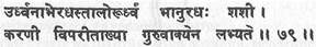 (79) Если область пупка находится сверху, а нёбо — снизу, то солнце сверху, а луна снизу. Это называется випарит карани, переворачивающий процесс. Это является полезным, когда получено от гуру.