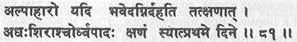 (81) Если ты потребляешь мало пищи, то жар, производимый пищеварительным огнем, разрушает тело. Поэтому в первый день следует оставаться в положении головой вниз лишь одно мгновение.