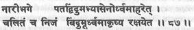 В предыдущих шлоках утверждалось, что если бинду падает в «солнце», то в результате имеют место разрушение и смерть, поскольку оно поглощается огнем на протяжении всей жизни. Солнце — это раджас в манипуре, но раджас — это также влагалищные выделения. Поэтому, если бинду падает в раджас, практика ваджроли не может быть успешной. Когда бинду попадает в манипуру, то, что в действительности поглощается огнем, является саттвическим нектаром бинду, который просветляет тело и дарует бессмертие. Чакры, расположенные ниже манипуры, связаны с инстинктивными животными функциями и с тамастическими качествами, и если бинду проливается здесь, оно превращается в яд, вызывающий страдание и смерть. Поэтому во время практики майтхуны саттвическое состояние ума должно поддерживаться любой ценой, даже за счет активации нижних чакр. Раджастические и тамастические тенденции этих центров должны распознаваться и контролироваться.
