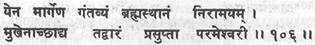 (106) Спящая Парамешвари покоится, закрыв своим ртом ту дверь, через которую лежит путь к узлу брахмастханы, месту, за пределами страдания.
