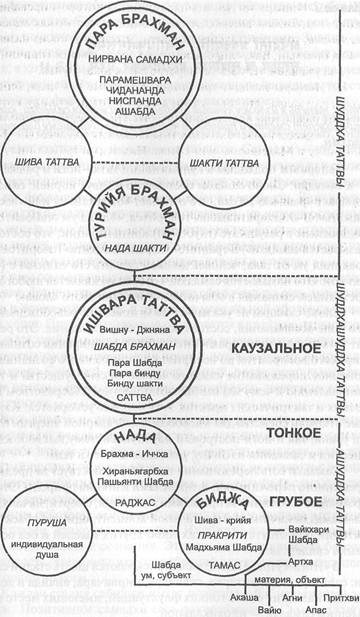 торая есть Ишвара таттва, и в пара бинду, в котором превалирует знание, или джняна шакти. Это пара бинду известно как гханавастха шакти, то есть тотальность шакти. Это то, что носит названия Шабда Брахман, Вак, слово, космическое каузальное (причинное) тело и каузальное тело нады, царство сатьялока, шунья.