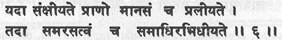 (6) Когда движение праны полностью уничтожается, тогда ум снова поглощается, и считается, что достигнуто состояние самадхи.