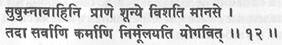 (12) Когда прана течет по сушумне, ум находится в чистой шунье. Тогда все кармы того, кто познает йогу, искореняются.