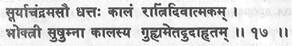 Считается, что сушумна является «поглотителем времени». Время носит название каала. Это конкретная стадия эволюции непроявленной шакти. Когда изначальная шакти проявляется, то для того, чтобы проявление имело место, она должна создать ограничения. Материальная вселенная, которую мы воспринимаем, считается «сжатием» непроявленной шакти. Сжатие, или ограничение, шакти называется канчука. Слово канчука означает «оболочка». Существует пять таких канчук; каала, или время, является первой. Это ограничение во времени. Эмпирическое время является силой, которая стремится расти, развиваться, созревать. Оно порождает разделение или очерчивание. Если быть более точным, это носит название «карья каала» — активный аспект времени.