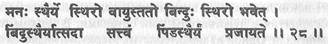 Когда ум спокоен, прана спокойна, тогда бинду является спокойным. Когда бинду удерживается спокойным, всегда наличествует саттвическое состояние, которое производит в теле устойчивость.