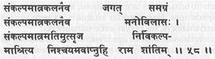 (58) Весь мир есть лишь порождение мыслей. Игра ума создается лишь мыслями. Если превзойти ум, который состоит из построенных мыслей, определенно будет достигнут покой, о Рама!