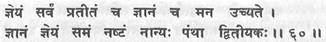 (60) Все, что может быть известно, все, что известно, и само знание называется умом. Когда познающий и то, что известно, исчезают, тогда нет двойственности или другого пути.