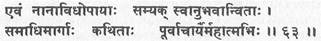 (63) Таким образом, на пути к самадхи есть много различных методов — в зависимости от индивидуальных переживаний, — рассказанных великими (махатмами).