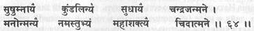 (64) Приветствие сушумне, кундалини, нектару, текущему из луны, состоянию ума без ума (манонмани), великой шакти, атме.