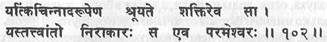 (102) Все, что слышится в виде мистической нады, есть, в действительности, шакти. То, в чем растворяются все элементы (панча таттва), есть бесформенное существо, высший владыка (Парамешвара).