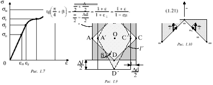 В последней формуле учтено, что em << 1. Сила F, растягивающая кубик (рис. 1.10), создает нормальное напряжение s=F/ l 2. Это напряжение передается на грани AB и BC параллелепипеда, однако силы, действующие на каждую из граней, имеют не только нормальную к грани, но и направленную вдоль грани составляющую Ft. Касательное напряжение оказывается при этом равным: