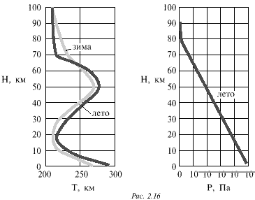 По мере увеличения высоты давление и плотность монотонно убывают, а температура монотонно убывает лишь в нижнем десятикилометровом слое, а в более высоких слоях меняется немонотонно. Параметры атмосферы зависят как от географического положения места, так и от времени года. Сложная высотная зависимость температуры атмосферы есть результат совместного проявления процессов тепломассопереноса, инициируемых излучением Солнца.