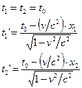 Два события, происшедшие в различных точках системы координат называются одновременными, если они происходят в один и тот же момент времени по часам этой системы координат. События, одновременные в одной системе координат, могут быть неодновременны в другой системе координат.
