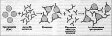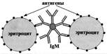 Механизм. Сложность выявления неполных (моновалентных) антител связана с тем, что эти антитела, связываясь с эпитопами специфического антигена, не образуют структуру решетки и реакция между антигенами и антителами не выявляется ни агглютинацией, ни преципитацией, ни другими тестами. Для выявления образовавшихся комплексов антиген — антитело приходится использовать дополнительные тест-системы. Для выявления неполных антител, например к резус-антигену эритроцитов в сыворотке крови беременной женщины, реакция ставится в два этапа: 1) к двукратным разведениям испытуемой сыворотки добавляют эритроциты, содержащие резус-антиген, и выдерживают при 37 °С в течение часа; 2) к тщательно отмытым после первого этапа эритроцитам добавляют кроличью античеловеческую анти-глобулиновую сыворотку (в заранее оттитрованном рабочем разведении). После инкубации в течение 30 мин при 37 °С результаты оценивают по наличию гемагглютинации (положительная реакция). Необходимо ставить контроль ингредиентов реакции: 1) антиглобулиновая сыворотка + заведомо сенсибилизированные специфическими антителами эритроциты; 2) обработанные нормальной сывороткой эритроциты + антиглобулиновая сыворотка; 3) обработанные исследуемой сывороткой резус-отрицательные эритроциты + антиглобулиновая сыворотка.