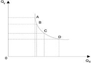 На представленной на рис. 2 кривой безразличия выделены четыре точки, соответствующие четырем равнополезными для потребителя комбинациям двух благ (Х и Y). Эти комбинации товаров дают потребителю одинаковое общее удовлетворение. Комбинации товаров, представляющие для потребителя большую или меньшую полезность, будут находиться выше или ниже представленной на рис. 2 кривой безразличия.