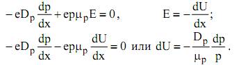 Итак, в условиях равновесия встречные дрейфовый и диффузионный токи