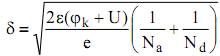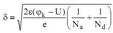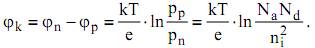 Определим выражение контактной разности потенциалов, для чего воспользуемся предыдущим соотношением, подставив выражения дрейфового и диффузионного токов: