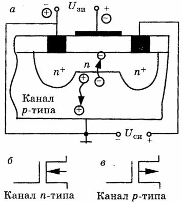 электропроводности канала. Области истока и стока оказываются разделенными областью p-полупроводника.