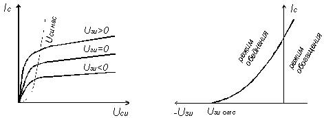 Отличие стоковых (выходных) характеристик МДП-транзистора со встроенным каналом от аналогичных характеристик транзисторов обогащенного типа заключается в том, что ток стока Iс существует как при положительном, так и при отрицательном напряжении на затворе (рисунок 1) и описывается аналитическими зависимостями, как и транзисторы с управляющим p–n переходом.