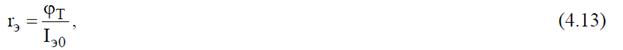 – ток эмиттера БТ в рабочей точке. С учетом этого в (4.11) объемное сопротивление базы БТ необходимо рассчитывать согласно выражению