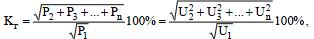 где P2, P3, Pn – мощности, выделяемые в нагрузке под воздействием 2-й, 3-й, n-й гармонических составляющих напряжения (U2, U3, Un); P1 – мощность в нагрузке, обусловленная основной гармонической составляющей напряжения U1.
