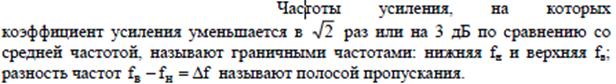 Диапазон усиливаемых частот (полоса пропускания) – разность между верхней и нижней граничными частотами Δf = fв – fн, в которой коэффициент уси-ления изменяется по определенному закону с заданной точностью.