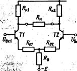 1. симметрии обоих плеч ДУ. По нему необходимо обеспечить идентичность параметров каскадов ОЭ(общим эмитером), образующих ДУ. При этом должны быть одинаковы параметры транзисторов Т1 и Т2, а также Rк1 = Rк2 (и R01 = R02). Если первое требование выполнено полностью, то больше ничего и не требуется для получения идеального ДУ. Действительно, при Uвх1 = Uвх2 = 0 достигается полный баланс моста, т. е. потенциалы коллекторов транзисторов Т1 и Т2 одинаковы, следовательно, напряжение на нагрузке равно нулю.