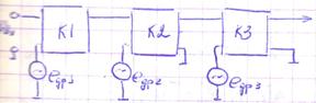 Схема замещения ОУ содержит входной дифференциальный каскад с коэффициентом передачи К1, который преобразует входной дифференциальный сигнал в выходной ток, поступающий на интегрирующее звено с коэффициентом передачи К2 . Выходной каскад является усилителем мощности и представляет собой повторитель напряжения. Их отличает высокая стабильность работы, малый дрейф нуля, большой коэффициент усиления дифференциального сигнала и большой коэффициент подавления синфазных помех. Любой ДУ выполняется по принципу сбалансированного моста, два плеча которого образованы резисторами Rк1 и Rк1, а два других — транзисторами Т1 и Т2. Сопротивление нагрузки включается между коллекторами транзисторов, т. е. в диагональ моста. Питание ДУ осуществляется от двух источников, напряжения которых равны (по модулю) друг другу, таким образом, суммарное напряжение питания ДУ равно 2Е. В реальных усилителях требуется выполнить два основных требования, для обеспечения необходимых параметров работ: