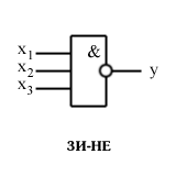 Логический элемент И-НЕ выполняет операцию логического умножения над своими входными данными, а затем инвертирует (отрицает) полученный результат и выдаёт его на выход. Таким образом, можно сказать, что логический элемент И-НЕ - это элемент И с инвертором на выходе. УГО элемента 3И-НЕ приведено на рис..