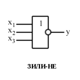Логический элемент ИЛИ-НЕ выполняет операцию логического сложения над своими входными данными, а затем инвертирует (отрицает) полученный результат и выдаёт его на выход. Таким образом, можно сказать, что логический элемент ИЛИ-НЕ - это элемент ИЛИ с инвертором на выходе. УГО элемента 3ИЛИ-НЕ приведено на рис.