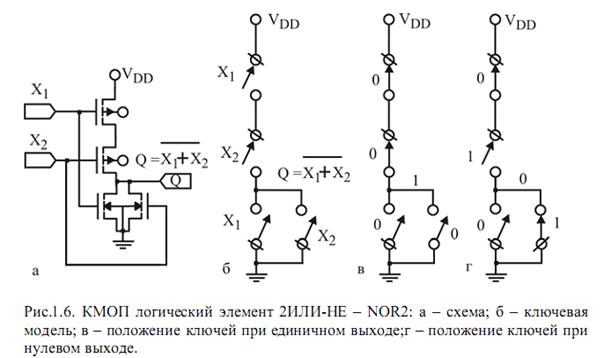 КМОП-вентили достаточно просто реализуют функции ИЛИ-НЕ (NOR)и И-НЕ (NAND).