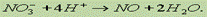 Необходимо отнять у NО3 2 атома О. Для этого к левой части добавим 4 иона Н1+ (кислая среда), а к правой — 2 молекулы Н2О: