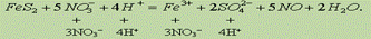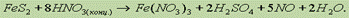 30.метод электронно-ионного баланс а. В этом методе рассматривают переход электронов от одних атомов или ионов к другим с учетом характера среды (кислая, щелочная или нейтральная), в которой протекает реакция. При составлении уравнений процессов окисления и восстановления для уравнивания числа атомов водорода и кислорода вводят (в зависимости от среды) или молекулы воды и ионы водорода (если среда кислая), или молекулы воды и гидроксид-ионы (если среда щелочная). Соответственно и в получаемых продуктах в правой части электронно-ионного уравнения будут находиться ионы водорода и молекулы воды (кислая среда) или гидроксид-ионы и молекулы воды (щелочная среда).Т. е. при написании электронно-ионных уравнений нужно исходить из состава ионов, действительно имеющихся в растворе. Кроме того, как и при составлении сокращенных ионных уравнений, вещества малодиссоциирующие, плохо растворимые или выделяющиеся в виде газа следует писать в молекулярной форме.Рассмотрим для нашего случая полуреакцию окисления. Молекула FeS2 превращается в ион Fe3+ (Fе(NО3)3 полностью диссоциирует на ионы, гидролизом пренебрегаем) и два иона SO42- (диссоциация H2SO4):