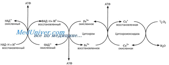 В процессе переноса протонов и электронов важную роль играют ферменты, относящиеся к классу оксидоредуктаз. Оксидоредуктазы, участвующие в дыхательной цепи, делятся на следующие основные группы.