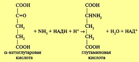 В процессе дыхания в качестве промежуточных продуктов образуются органические кислоты, в том числе а-кетоглутаровая и щавелевоуксусная. Эти кислоты в результате реакции прямого восстановительного аминирования присоединяют аммиак: