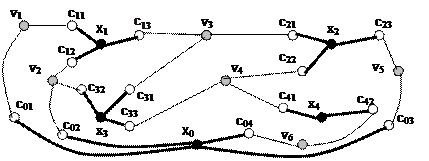 Элементные ребра принадлежат выводам из множества С и элементам из множества Х и задается парами вершин (хi, ck).