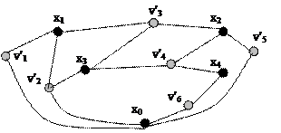 4.2.2 Граф элементных комплексов (ГЭК). В ГКС выводы элементов (контакты) стягиваем внутрь вершины, т.е. отождествляем выводы сi с самими элементами xi. При этом устраняются элементные ребра F, комплексы vj переходят в элементные комплексы v′j. Данная модель схемы G x =(X,V x,W) называется графом элементных комплексов.